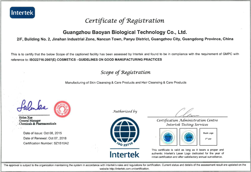 廣州葆妍生物科技有限公司位于廣州番禺金山工業園,成立于2009年,經營面積12000平方,集化妝品(護膚類、彩妝類)配方開發、生產加工于一體,專業化、規模化的化妝品OEM/ODM/OBM企業...